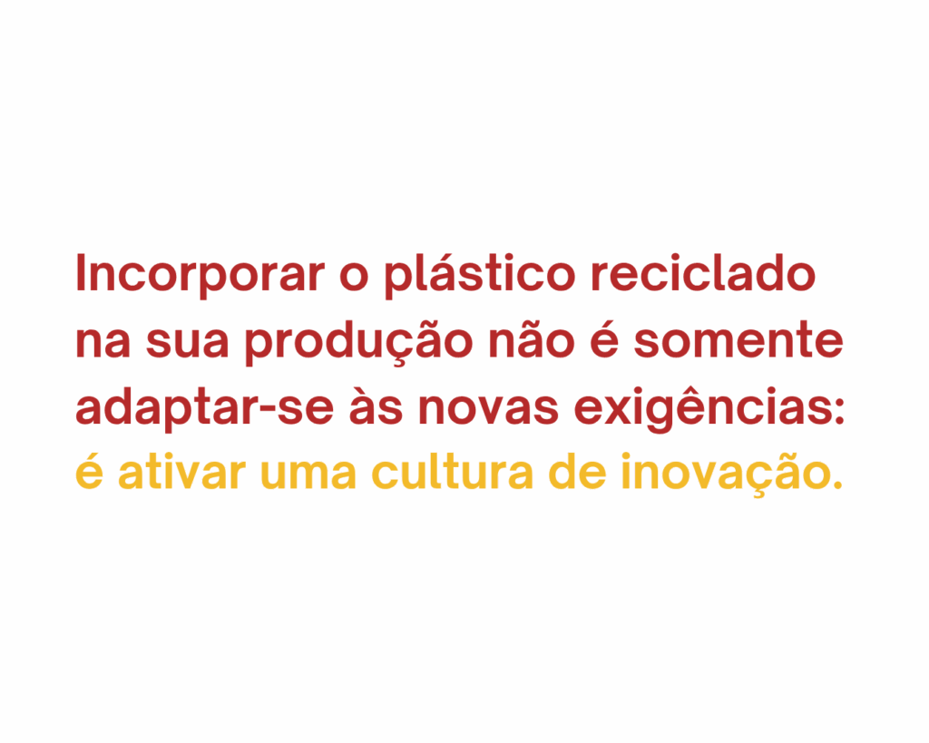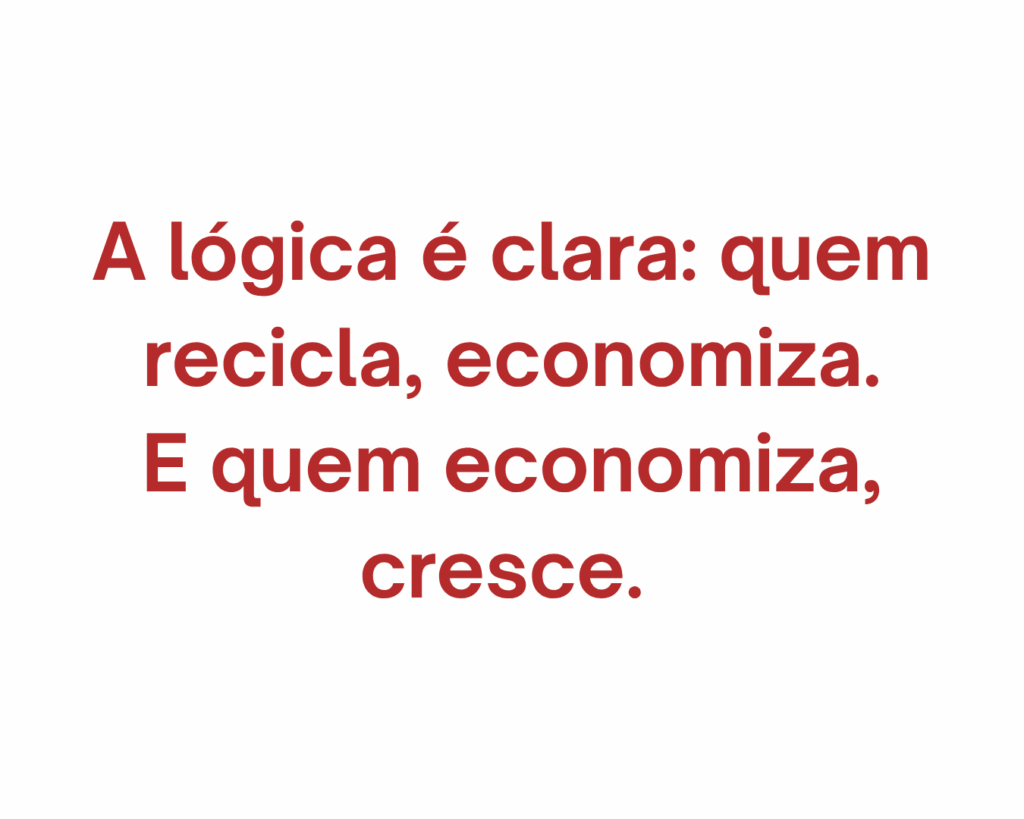 Incorporar o reciclado não é somente adaptar-se às novas exigências: é ativar uma cultura de inovação. Empresas que investem em soluções circulares desenvolvem novos produtos, criam parcerias sustentáveis e acessam linhas de financiamento verdes. Reciclar é, também, inovar.