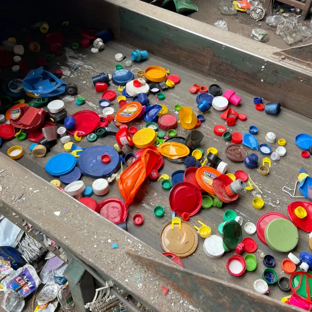 Nesse ponto, nós, na Trevo Reciclagem, assumimos o trabalho mais desafiador. Nós recebemos cargas heterogêneas, com misturas de tipos de plásticos, cores e níveis variados de sujeira. Em seguida, nós triamos, separamos, retiramos contaminantes e organizamos cada fluxo.