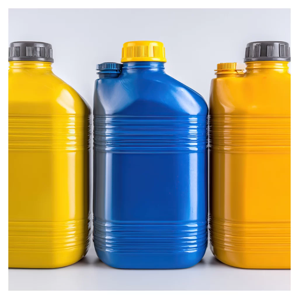 Baldes, tambores, caixas e paletes aceitam altos percentuais de PCR. Essas aplicações priorizam resistência mecânica sobre acabamento estético. Consequentemente, toleram variações de cor e pequenas inconsistências típicas do material reciclado.
